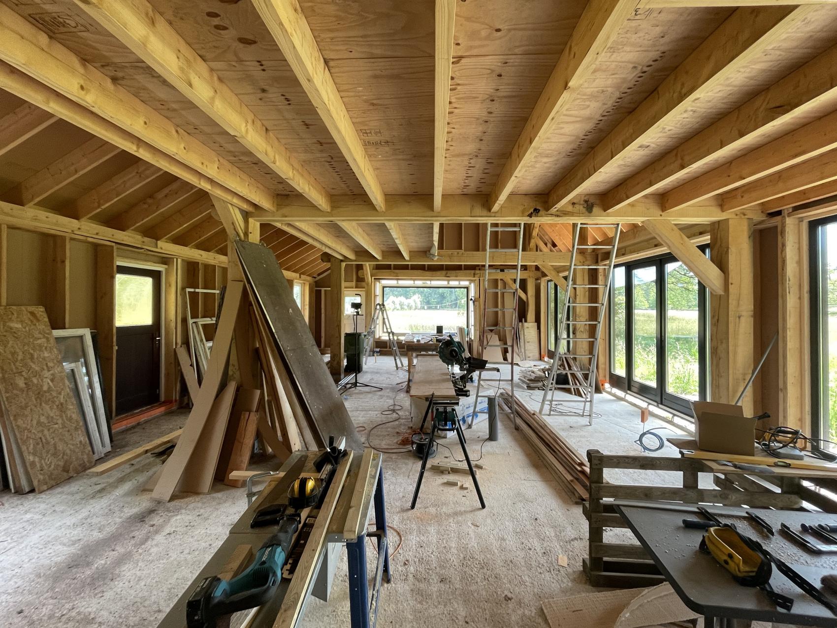 Het huis wordt wordt grotendeels door de familie zelf gebouwd, drie generaties zijn actief met vrienden en verdere familie. Boompje groot plantertje dood, de klein-, achter en achter-achter-kleinkinderen gebruiken het hout van de bomen die door hun voorvader werden geplant. In dit energie-neutrale huis wordt maximaal gebruik gemaakt van biobased en tweedehands bouwmaterialen.