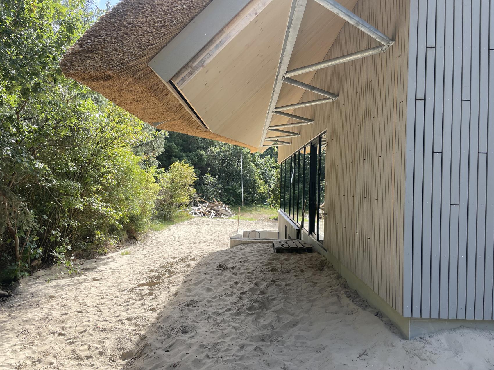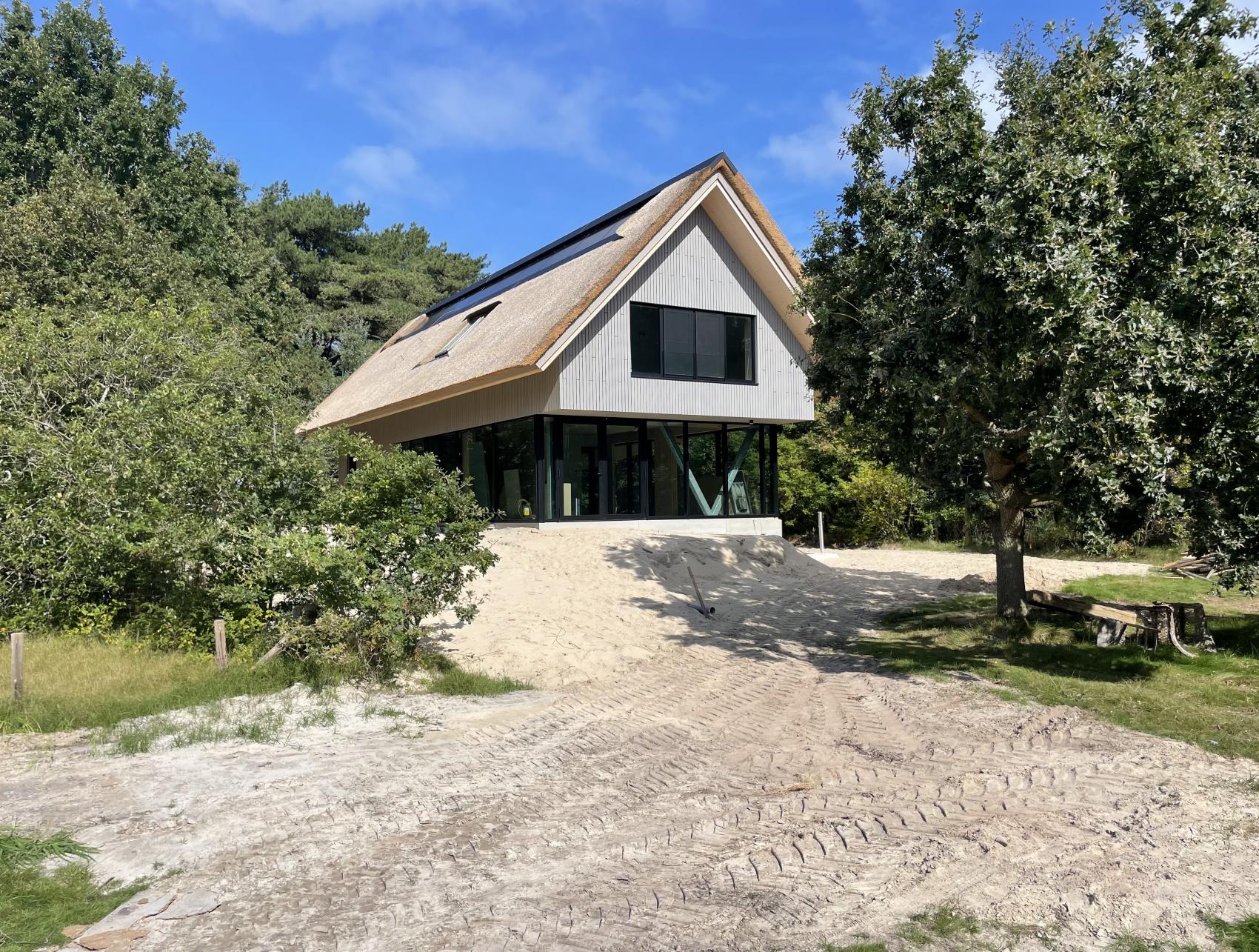 In 2023 startte de bouw van dit vakantiehuis. In januari 2024 wordt de geprefabriceerde massieve (CLT) houtconstructie geplaatst. Het dak wordt afgewerkt met riet, met in de nok, veilig en keurig, de nodige PV panelen. In combinatie met een bodemwarmtepomp, triple-glas etc. wordt hier een duurzaam huis gebouwd voor deze familie die al generaties lang op Ameland vertoeven.